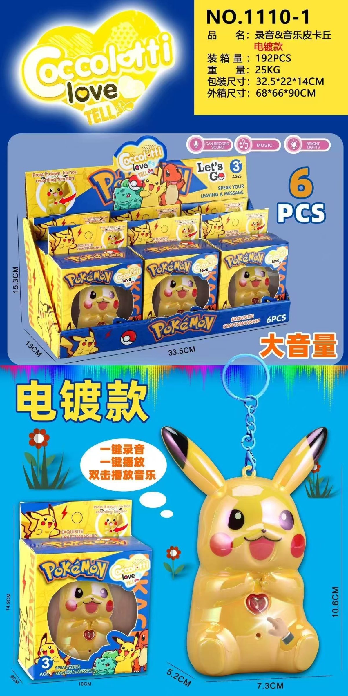 BRELOK PIKACHU Z POWTARZAJĄCY DŹWIĘK LED