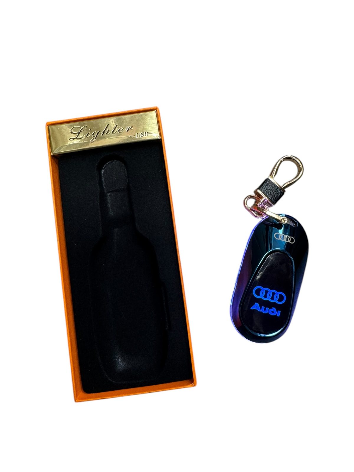 Elegancki brelok AUDI LED + zapalniczka żarowa USB latarka gadżet dla Fana
