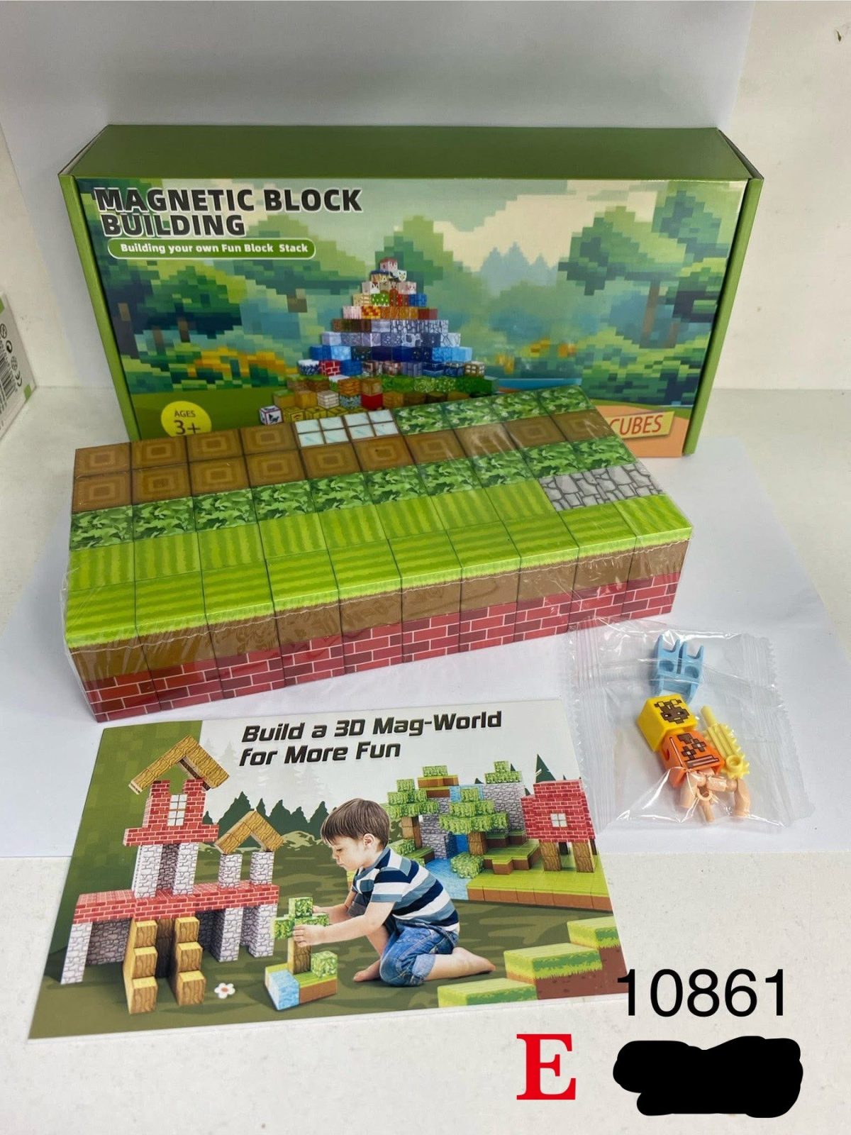KLOCKI MAGNETYCZNE MINECRAFT KLOCKI SZEŚCIANY 100 KLOCKÓW + 1 FIGURKI MOCNE