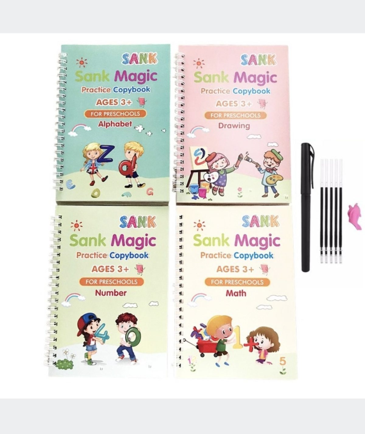 MAGICZNE KSIAZECZKI DO NAUKI PISANIA LITERY KALIGRAFIA ZESTAW 4SZT
