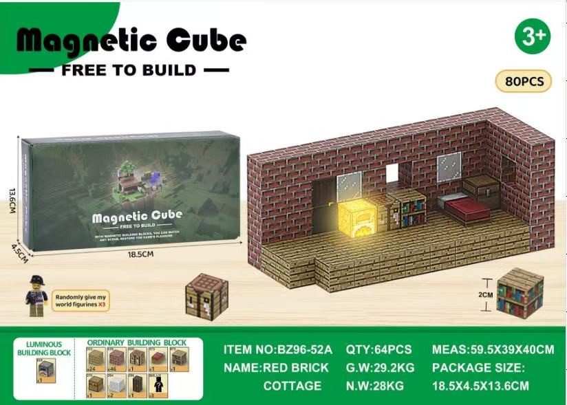 MINECRAFT KLOCKI MAGNETYCZNE KONSTRUKCYJNE BLOKI SZESCIANY PIXELE (80 EL)