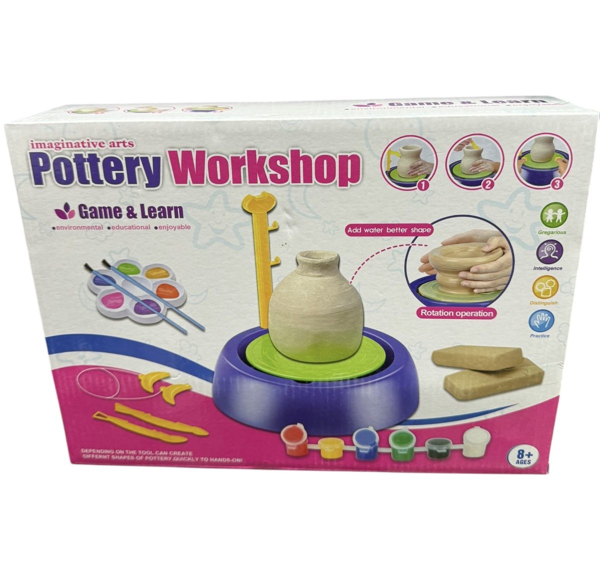 ZESTAW KREATYWNY KOŁO GARNCARSKIE GLINA FARBY ZABAWA PLASTYCZNA DIY PREZENT 9330308